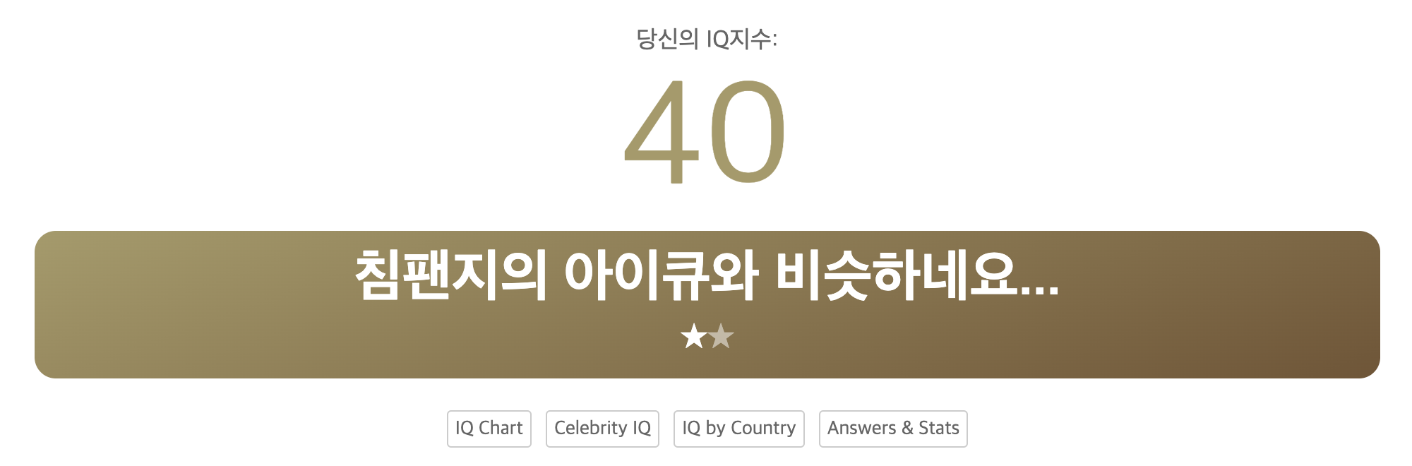 오늘은 재미로 해볼 수 있는 아이큐테스트에 대해 소개해보았습니다. 물론 정확한 테스트가 아니기 때문에 결과를 무조건 신뢰할 필요는 없지만 재미 삼아 내 아이큐는 어느 정도 되는지 알고 싶을 때 사용할 수 있을 것 같습니다.